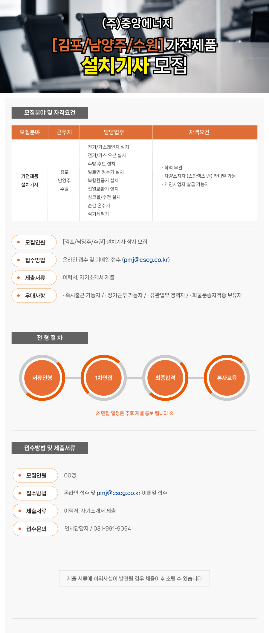 [김포/남양주/수원] 가전제품 설치기사 모집 안내
